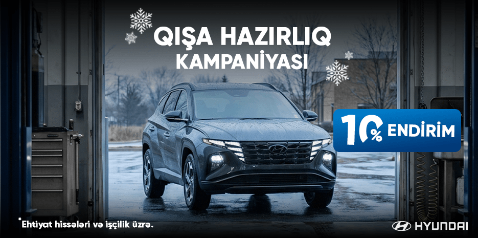 Hyundai sahibləri üçün ilin son servis fürsəti! Avtomobilinizi qış mövsümünə tam hazır edin və xüsusi endirimlərlə daha sərfəli xidmət alın.